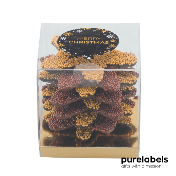 Onze kerst chocolade is door een ambachtelijke chocolatier gemaakt van topkwaliteit chocolade en de allerbeste ingrediënten. De verzorgde verpakking is optioneel te personalisen met je eigen logo en tekst. De chocolade creëert een positief gevoel bij zowel het geven als het ontvangen en verblijdt gevers en ontvangers.